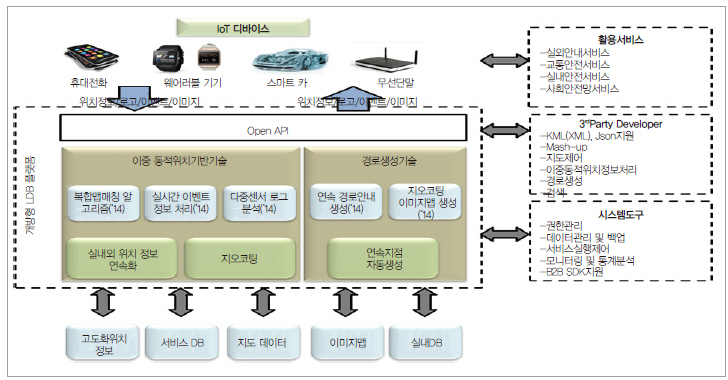 또한, 다양화 되는 IoT 환경에 대응하기 위해, 실내외에서 활용 가능한 경로 및 안내 정보 생성 기술 개발 또한 요구된다. 공공기관에서 제공하는 기존 플랫폼(ETRI 개방형 LBS 플랫폼, 브이월드) 기술을 활용하여 LBS 개발 지원 플랫폼의 효율성을 높일 필요도 있다.
