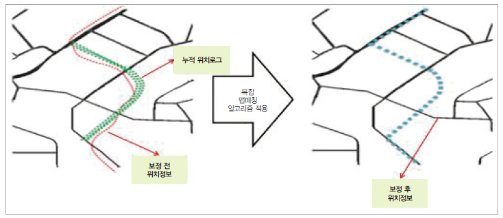 이러한 문제를 해결하기 위해 개발된 기술이 맵 매칭(Map-Matching)기술이다. 특히, 맵 매칭 기술은 지도의 오차를 극복하는 것은 물론, 특수한 장애 상황에서의 위치 표시 정확도를 나타내는 기술로 표현되어야 한다. 따라서 필터링 기술, 퍼지(fuzzy) 이론, DR(Dead Reckoning)과의 연계 등 맵 매칭 기술이 개발 및 발전됐다.