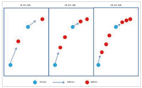 다중 센서로 수집하는 위치, 가속도, 방향 등의 로그 정보(이력)를 실시간 분석하여 위치 예측 및 음영구간(위치 정보 비 수집 구간) 위치 정보를 산출한다. 로그 분석을 통해 초 단위 위치 정보 수집으로 통신량을 감소시킨다.