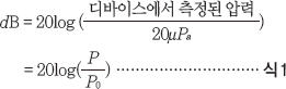 음의 세기는 음압의 제곱에 비례하고, 음압 레벨은 다음 식 1과 같이 구하며, 단위는 dB로 표현한다.