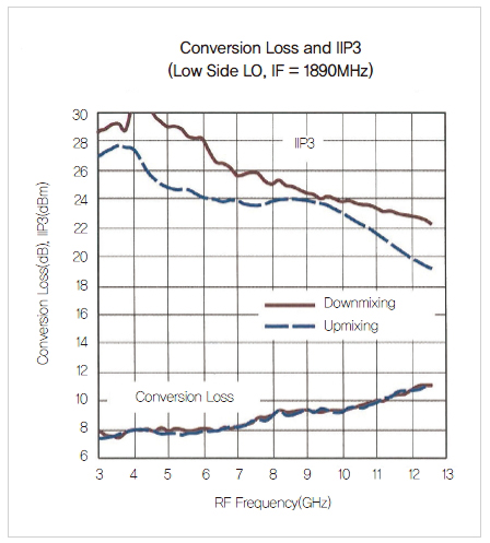 특히 9GHz일 때 24.4dBm IIP3의 뛰어난 선형성을 제공할 수 있다. 이는 기존의 마이크로웨이브 유형의 믹서와 비교하면 4∼6dB가 높은 수치이다. 또한 0dBm 드라이브 레벨만 필요한 통합형 LO 버퍼를 갖춘 마이크로파 트랜스미터 및 리시버 설계를 실현함으로써, 외장형 고전력 LO 증폭기 회로가 필요하지 않다는 장점이 있다.