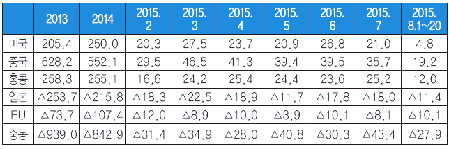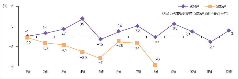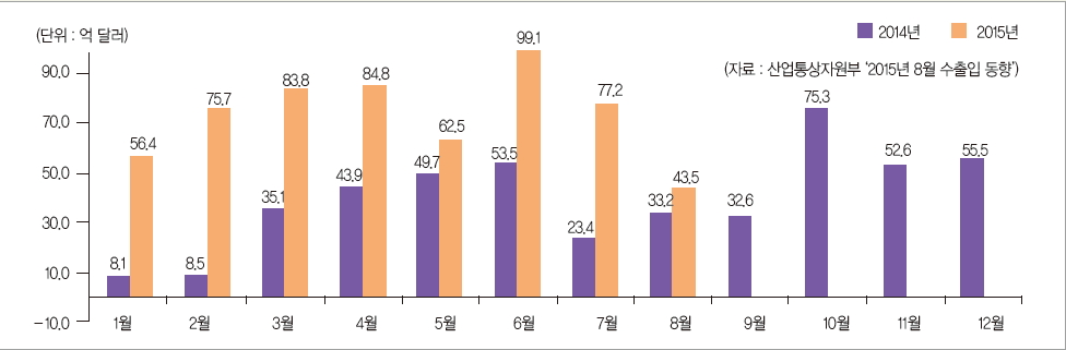 *자료 : 산업통상자원부 ‘2015년 8월 수출입 동향’