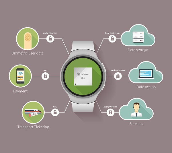 손목을 움직여 커피숍에서 결제를 하고, 원형 베젤을 돌려 스크롤하면서 이메일을 볼 수 있는 새로운 삼성 기어 S2 스마트워치가 사용자의 편리성과 이동성을 더욱 강화한다. 인피니언 테크놀로지스(코리아 대표이사 이승수)는 모든 삼성 기어 S2 모델에 임베디드 보안칩(embedded Secure Element, eSE)을 제공한다. 이 칩은 사용자의 민감한 데이터를 안전하게 보호하고, 근거리 무선 통신(NFC) 기술에 기반한 보안 비접촉식 결제를 지원한다.