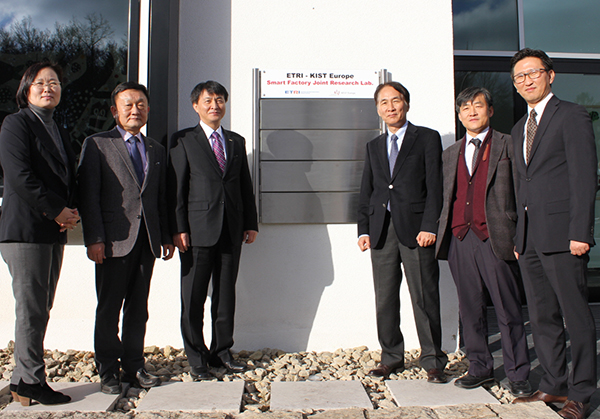 ETRI와 KIST 유럽연구소가 스마트 팩토리 공동연구에 힘을 모았다. ETRI(한국전자통신연구원)는 지난 3일 독일 자브리켄에서 KIST(한국과학기술연구원) 유럽연구소와 ‘ETRI-KIST 유럽 스마트 팩토리 공동 연구실’ 설립을 위한 업무 협약과 개소식을 가졌다.