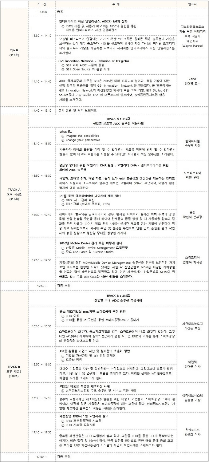 키노트에 이어 본 세미나는 '글로벌 AIDC 솔루션의 산업별 적용사례'와 '국내 AIDC 솔루션의 산업별 적용사례' 등 두개 트랙으로 나눠 진행된다.