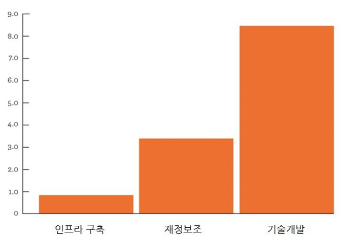 보고서는 현재 전기자동차 시장에 지속적인 기술개발 투자가 가장 중요한 요소라 강조하고 있다. 재정지원은 시장이 정착하게 되면 소멸될 분야지만, 현재까지의 인프라 투자는 비교적 낮은 수준으로 판단된다. 이는 장기적인 기술개발 프로그램보다 충전기 보급비용이 낮기 때문이며, 국가들의 재정지원이 가장 쉽게 결정할 수 있는 이유이기도 하다.
