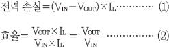 그림 1에 나타난 선형 레귤레이터의 경우, 전력 손실과 효율은 식 (1)과 식 (2)로 정해진다.