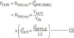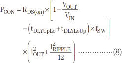 MOSFET 채널이 식 (8)에 따라 전도할 때 전도 손실은 단순한 I2R 손실이다.