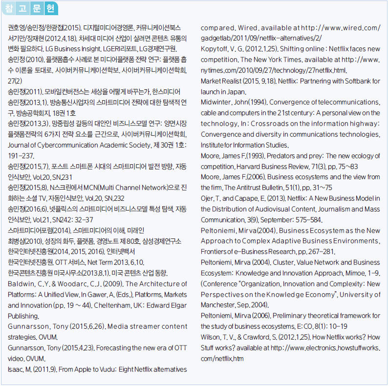 <표 1>을 보면, 앞서 언급한 넷플릭스처럼 하나의 장르만 제공하는 기업을 버티컬 플랫폼이라 부르며, 아마존처럼 많은 콘텐츠와 서비스 포트폴리오를 가진 기업을 호리즌탈 플랫폼이라 부르고 있다.