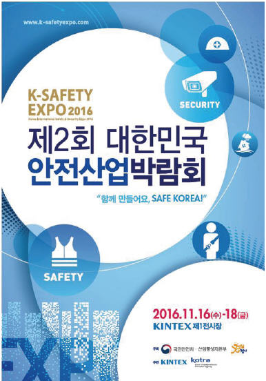 국내 안전산업 기반 조성과 안전문화에 대한 국민적 공감대 형성을 위해 오는 11월16일(수)부터 18일(금)까지 3일간 킨텍스에서 ‘제2회 대한민국 안전산업박람회’가 안전산업 전문 전시회로는 최대 규모(30,000m2)로 개최된다.