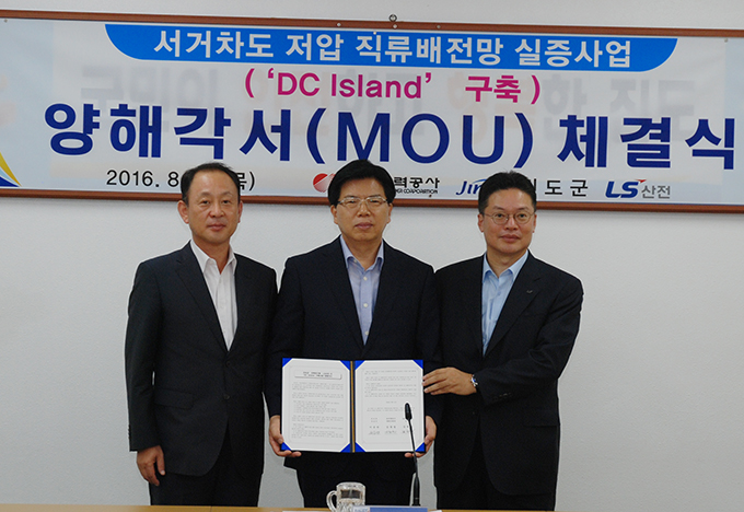 한전 전력연구원, 진도군, LS산전은 지난 11일, 진도군청에서 전남 진도군 서거차도를 직류배전망이 설치된 ‘DC Island’로 탈바꿈하기 위한 양해각서(MOU)를 체결했다.