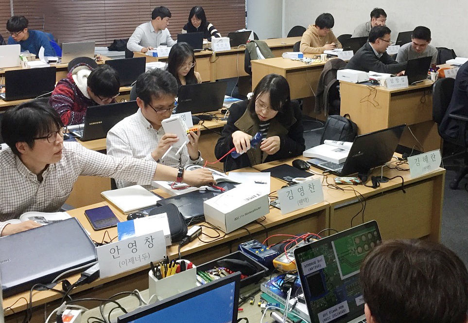 ‘IoT보안 코디네이터 과정’은 IoT 기기의 시스템 · 모듈을 설계하는 개발자들이 제품의 구상 · 개발 단계부터 보안 기능을 내재화할 수 있도록 ▲ 기밀성, 무결성․인증, 가용성 등 제품 · 서비스 개발 시 고려해야 할 보안 이론 ▲ 키값 · 데이터 유출 방지, 트래픽 경량화를 위한 암호 알고리즘 설계 ▲ 소프트웨어 · 펌웨어 · 임베디드 디바이스의 임의 접근 등 보안 위협 대응 등 현장중심형 실습으로 구성됐다.