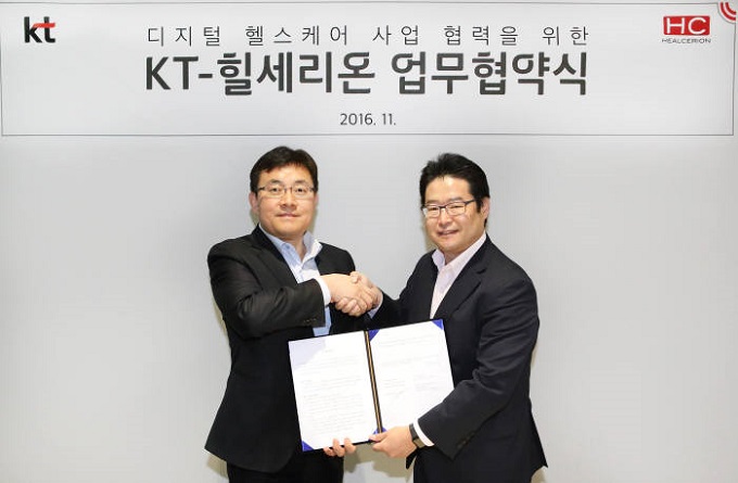 KT는 모바일 헬스케어 스타트업 힐세리온과 2일 글로벌 디지털 헬스케어 사업협력을 위한 양해각서(MOU)를 체결했다고 밝혔다.