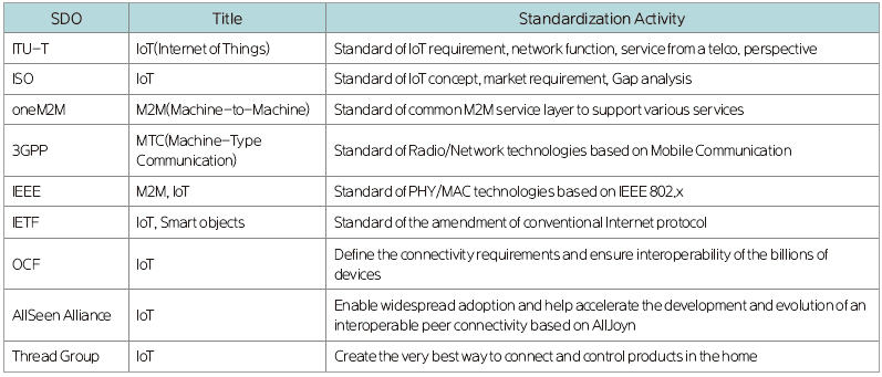 ▲ 표 1. 사물인터넷(IoT) 표준화 기구 현황