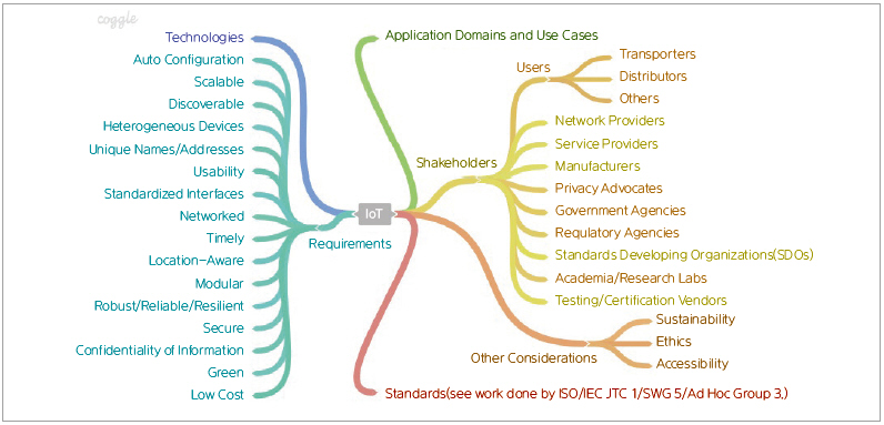 ISO/IEC JTC 1은 2012년 IoT의 본격적인 표준화를 시작하기 전 IoT에 대한 사전작업을 위한 특별작업반인 SWG 5를 설립했다(그림 3 참조).