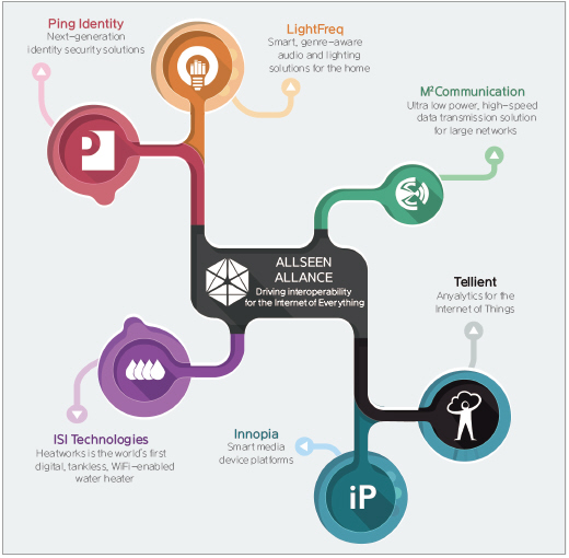 가전 기기 간의 연동을 목표로 시작된 올신얼라이언스(AllSeen alliance)는 그동안 활발한 활동을 해 왔으며, 업체들은 2016년부터 본격적인 기기 상용화를 예고하기도 했다(그림 7 참조). 2014년 IFA에서는 많은 모든 가전 업체들이 올신얼라이언스 협력을 나타내는 로고를 사용하기도 했다.