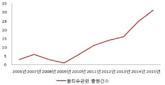 ▲ 물티슈 관련 연도별 특허 출원 건수 [자료=특허청]