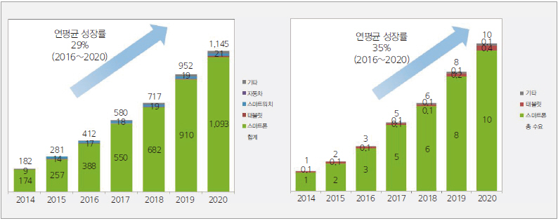 모바일은 스마트폰 시장 성장이 둔화되면서 모바일 패널 시장 성장률은 2015년 10%에서 2016년 3%로 하락했다. 그러나 스마트폰에서의 OLED 채택 비율이 2015년 17%, 2016년 24%, 2020년 55%로 늘어나고 증강현실(AR) 및 가상현실(VR)은 OLED를 탑재한 스마트폰 성장의 확장 요인으로 작용할 것으로 강 대표는 분석했다. 이에따라 모바일 OLED 수요가 점차 증가할 것으로 내다봤다. 현재 OLED 집중 투자로 대폭적인 OLED 수요 증가를 견인함으로써 향후 2년간 예상 OLED 성장률은 패널 생산량의 경우 30% 이상, 패널 면적은 40% 이상이 될 것으로 예측됐다.