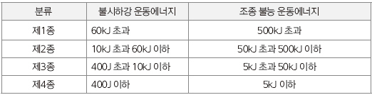 ③ 운동에너지에 의한 분류는 과학적 자료를 기반으로 하고 있어, 무인기 사고의 보험제도 도입 시 보험요율 산정을 위한 기준으로 활용할 수 있다.