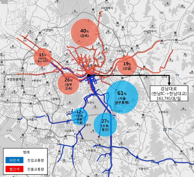 기존 현장조사의 경우 전국도로대비 교통량 수집량이 3%에 불과했으나 이제 미관측 도로 교통량 추정알고리즘과 전국단위 빅데이터 처리기술을 통해 기존 조사의 시간과 예산의 제약을 극복하고 전국 95% 도로의 교통량을 확인할 수 있게 됐다.