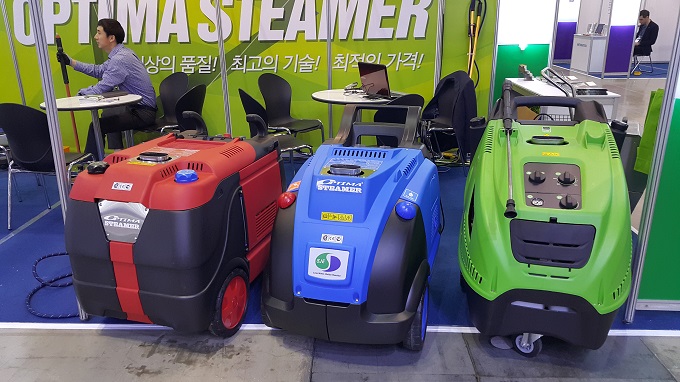 한국기계전에 참가한 에스제이이는 스팀 세척기, 옵티마 스티머의 신제품인 OPTIMA XD를 선보였다.