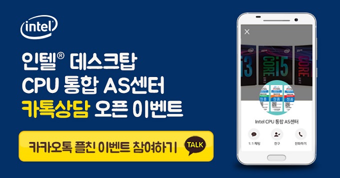 인텔 공인대리점 3사 '인텍앤컴퍼니', '코잇', '피씨디렉트'는 인텔 코어 프로세서의 정품 구매 고객만을 위해 설립된 인텔 데스크톱 CPU 통합 AS센터에 카카오톡 상담 서비스를 공식 오픈했다고 18일 발표했다.