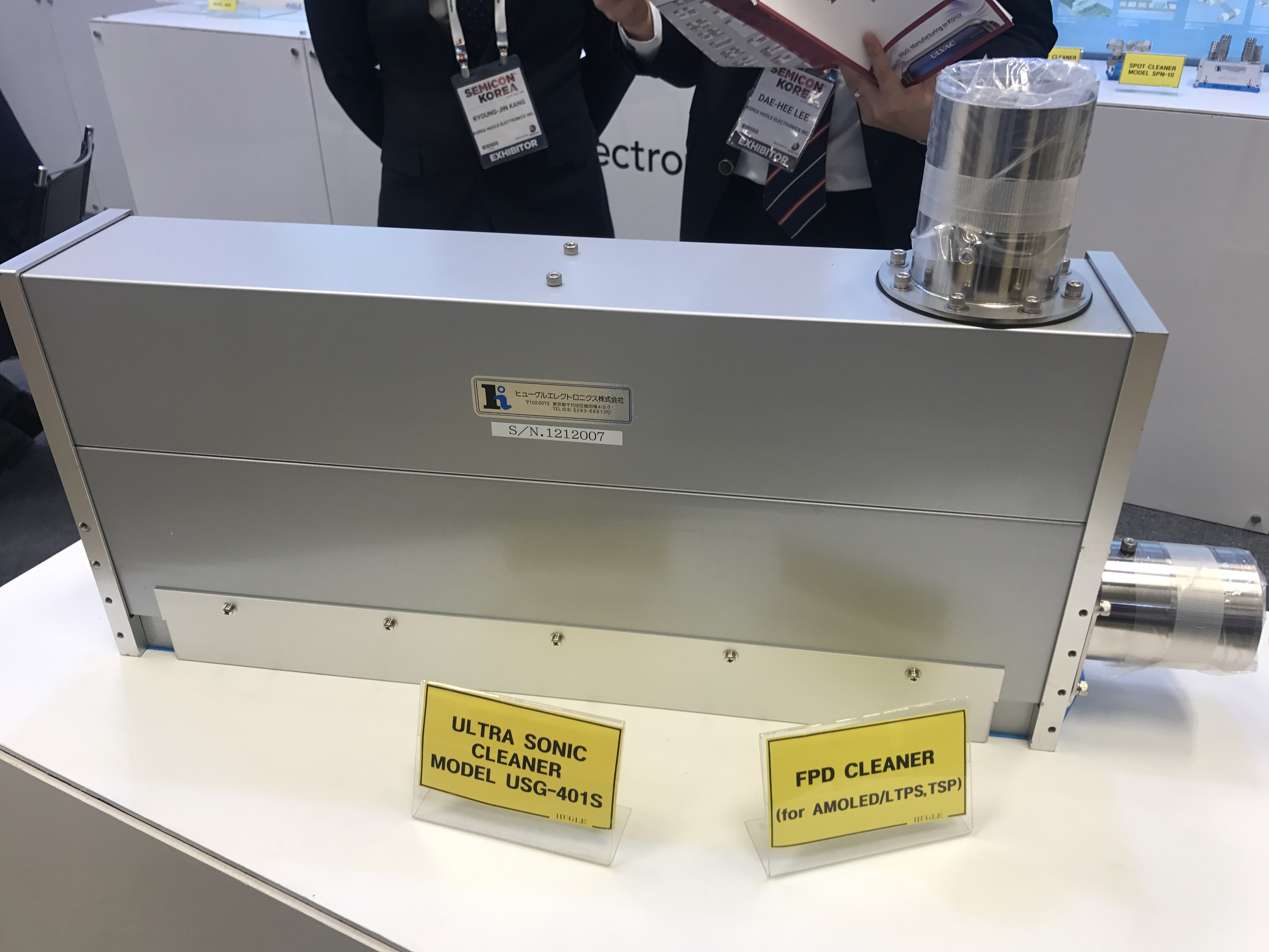 한국휴글전자가 선보인 초음파 드라이 클리너는 제품의 표면층에 부착된 미립자(particle)을 초음파진동 공기로 들뜨게 해 흡인 슬릿(slit)에서 빨아들이는 방식의 비 접촉방식 초음파 클리너이다. 제품에 데미지를 가하지 않고 세정하고 싶거나 눈으로 보이지 않는 미세한 이물을 줄이고 싶은 경우 등에 적용할 수 있는 제품이다.