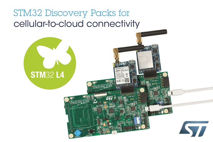 ST마이크로일렉트로닉스(이하 ST)가 2G/3G나 LTE Cat M1/NB1 네트워크를 통해 IoT 기기를 클라우드 서비스에 신속하게 연결해주는 STM32 디스커버리 팩(Discovery Pack) 2종을 특별 구성해 출시하여 매스 마켓 개발자들이 자유롭고 유연하게 사용할 수 있도록 했다.