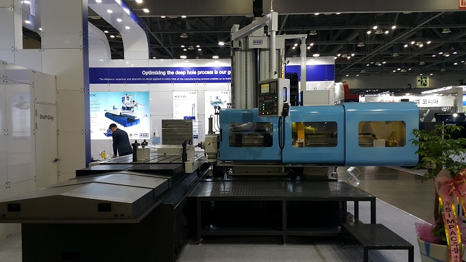 30년 이상 최적의 기계 시스템과 툴을 제공해 온 한국건드릴(KGD)은 SIMTOS 2018에 참가해 고효율의 건드릴 기계들을 선보였다. 그중 대형 금형 심공 가공용 컬럼 타입의 건드릴 기계인 KHG 시리즈는 주축 회전수, 절삭이송속도, 절삭유압 등 필요한 절삭 조건을 최적의 상태로 선정할 수 있다. 워크 테이블은 중량 가공물 적재가 가능하며 냉각수 홀 가공, 이젝터 핀 홀 가공이 용이하다. 동일 가공 소재에 홀 깊이가 다른 다수 개의 홀 가공에서도 효율적인 양산 가공과 단품 가공이 가능하다.