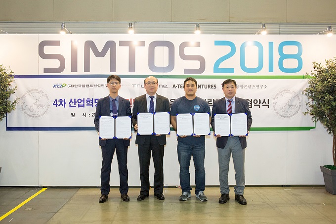 제조 혁신 스타트업 에이팀벤처스(대표 고산)와 한국플랜트건설연구원(원장 김영건), 더트루바인(대표 박용우), 창의융합콘텐츠연구소(대표 김진국)는 지난 4일 4차산업 인재 양성을 위한 상호협력 양해각서(MOU)를 일산 킨텍스 서울국제공작기계전 현장에서 체결했다.