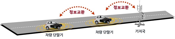 ▲ 차량 간(V2V), 차량-기지국(V2I) 간 정보교환 개념도