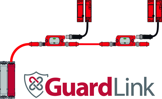 GuardLink를 이용하면, 안전장치의 직렬연결이 용이하고, 장치의 진단 정보에 액세스할 수 있다. 이 시스템은 링크 당 최대 장치 32대까지 단일한 4도체 케이블로 연결하여 안전, 진단, 원격 재설정 및 잠금 명령을 제공한다. 더불어, 배선 작업이 최대 38% 감소되어 설치비용이 대폭 절감된다.
