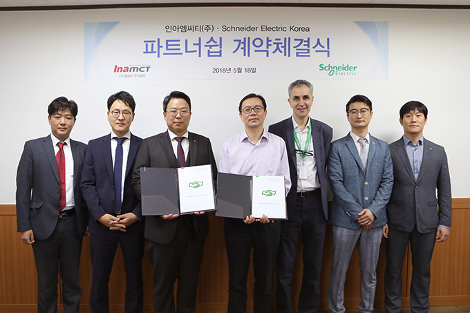 모션 컨트롤 전문기업 인아엠씨티와 슈나이더일렉트릭코리아는 지난 5월18일, 4차 산업혁명 시대 경쟁력 강화 위한 파트너십 계약 체결을 체결했다. 이날 체결식에는 인아엠씨티 신동진 대표와 슈나이더일렉트릭 Mr.Pang을 비롯해 양사 주요 관계자들이 참석했다.