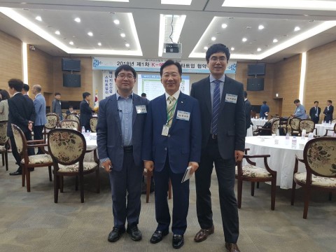 ▲ 왼쪽부터 세이프어스드론 강종수 대표, 한국전기산업진흥회 장세창 회장, 세이프어스드론 이종현 이사