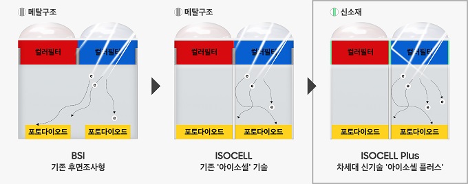 '아이소셀 플러스'는 기존 '아이소셀'기술을 한 단계 더 진화시킨 것으로, 구조설계를 개선하고 후지필름의 신소재를 적용함으로써 광 손실을 최소화해 이미지센서의 성능을 높일 수 있는 기술이다.