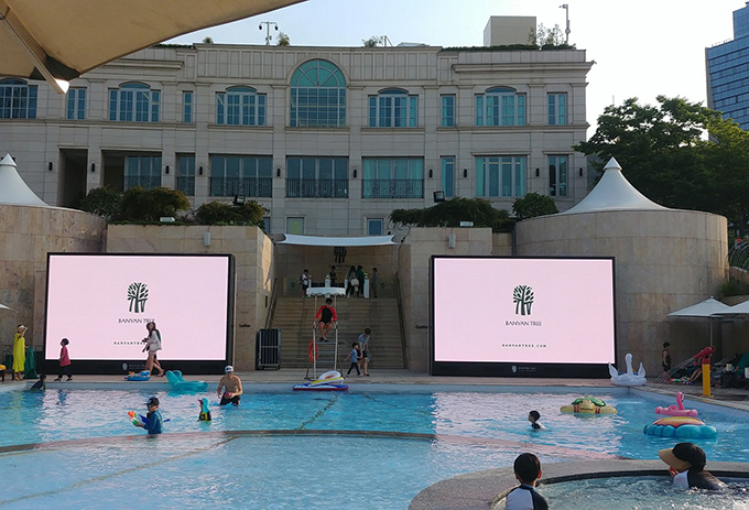 반얀트리 호텔 관계자에 따르면 “스마트 듀얼 LED 전광판의 도입으로 호텔의 품격을 높이고, 옥외풀장에서 열리는 옥외 풀파티나 행사, 호텔 안내용등의 다양한 용도로 고객을 맞을 것으로 전망되는 가운데 풀장에서 한여름을 식히는 고객들에게 또 다른 즐거움을 선사하고 있다”고 한다.