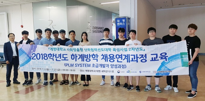 다쏘시스템과 계명대학교 산학인재원은 2일 계명대학교 쉑터관에서 '계명대학교 사회맞춤형 산학협력선도대학 육성사업'을 위한 '제7차 2018 하계방학 채용연계 PLM 시스템 초급개발자 양성과정' 오픈식을 열고 4주간의 교육과정을 시작했다.