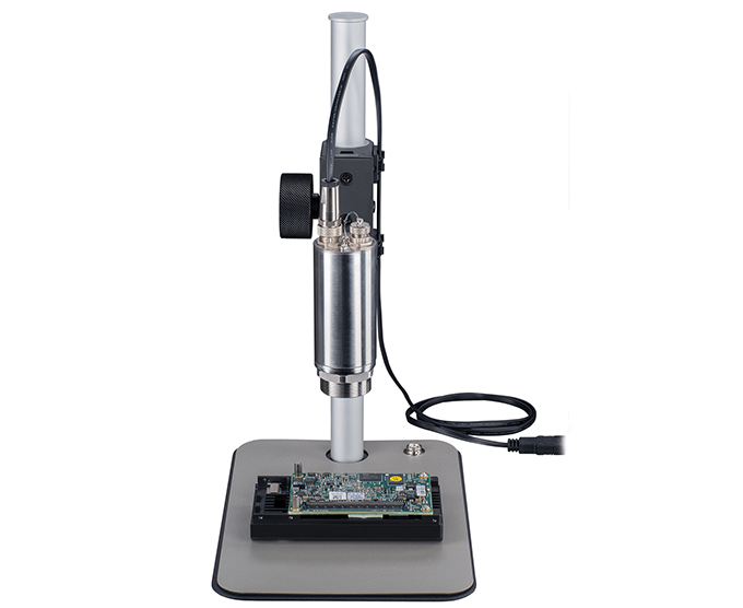 현미경 렌즈를 장착한 이 열화상 카메라는 시험 및 측정 범위에서 간단하게 초점을 조절할 수 있는 고품질의 테이블 거치대가 세트로 포함되어 나온다.