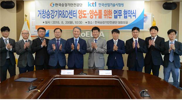 한국산업기술시험원(원장 정동희, 이하 KTL)과 한국승강기안전공단(이사장 김영기, 이하 공단)은 지난 20일 공단 5층 대회의실에서 거창 승강기 R&D센터 업무이관을 위한 협약을 체결했다.
