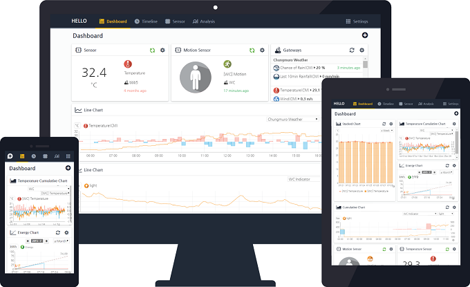 씽플러스(Thing+)는 사용자가 스마트 폰, PC, 태블릿 등은 어떤 디바이스에서 어떤 응용 프로그램을 사용하건 모든 클라이언트 환경에서 실시간 대시보드, 데이터 분석, 룰 기반의 시스템 통지(alerts) 및 제어, 데이터 시각화 등 다양한 사용자 편의 기능을 제공한다.