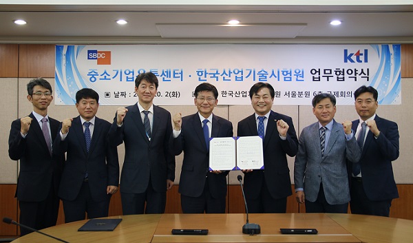 한국산업기술시험원(이하 KTL)과 중소기업유통센터(이하 SBDC)가 10월 2일 KTL 서울분원에서 업무협약을 체결하고, 중소기업 혁신제품의 판로개척을 지원하기 위하여 상호협력하기로 하였다.