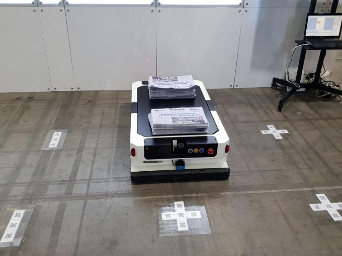 QGV M3는 QR Code guided Vehicle의 약자로, QR코드를 활용해 위치 정보와 각도 정보를 인식해 정밀 주행하는 무인 운반 물류시스템이다.
