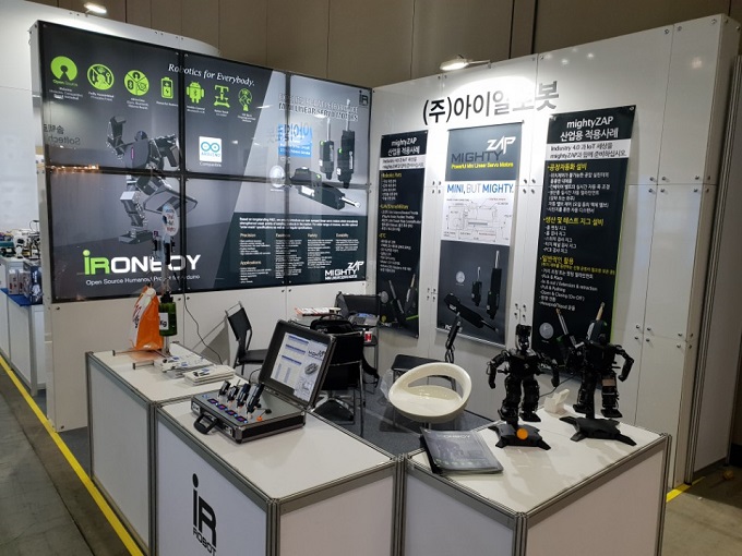아이알로봇이 10월 10일부터 13일까지 나흘간 킨텍스에서 개최하는 ‘2018 로보월드’에 참가해 아이언보이 IRH-100과 미니 리니어 서보 모터 mightyZAP를 선보였다.
