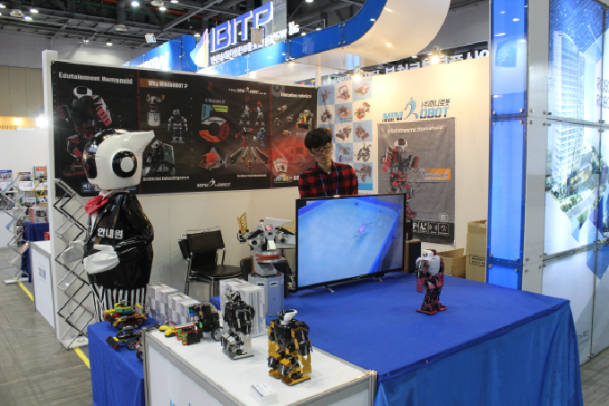 이번 전시회에서 미니로봇은 미니로보 1/2/3(코딩교육용 블록조립형 로보틱스)과 휴머노이드 플랫폼(MF-17ST)을 소개했다. 미니로보는 비대칭블록으로 집중력과 주의력 향상을 위한 교육용 로봇이다. 미니로보 구성에는 6면 조립이 가능한 블록과 프레임을 비롯해 메인보드와 모듈, 모터, 가이드북이 포함돼있다.