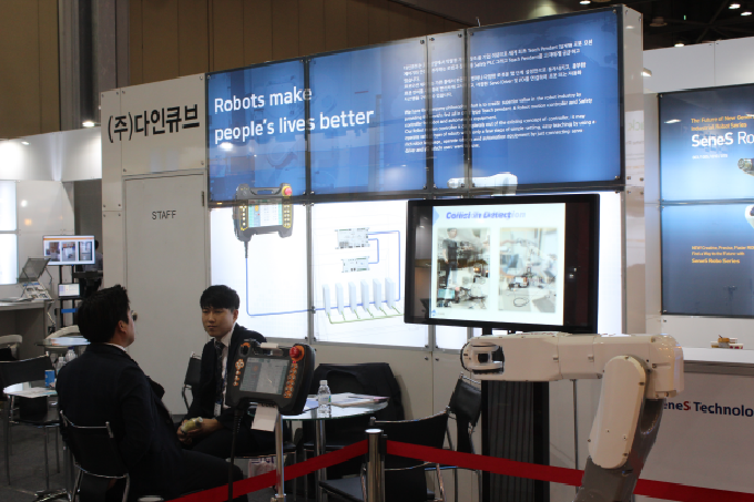 이번 전시회에서 다인큐브는 자사가 개발한 로봇 세이프티 콘트롤러와 로봇 모션 콘트롤러를 소개했다. 로봇 모션 컨트롤러는 기구학을 지원하여 Cartesian, SCARA, Delta, Articulated robot 등 다양한 유형의 로봇에 사용되는 기술 집약적 제품이다.