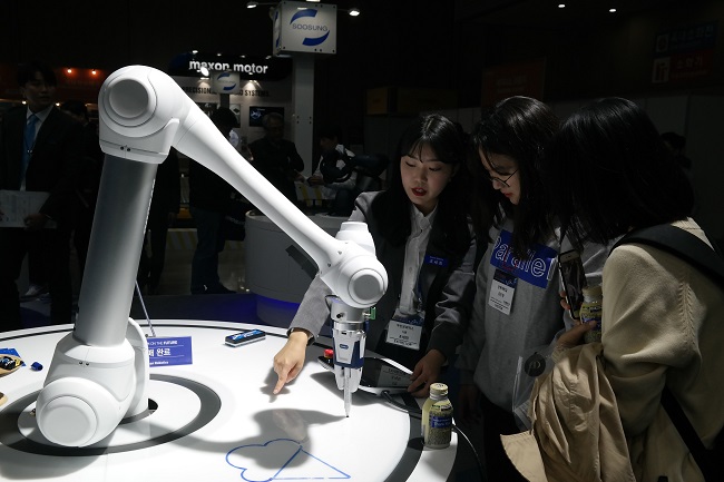 ▲ 협동로봇 'M1013' 모델로 UX 차별화 시연 모습