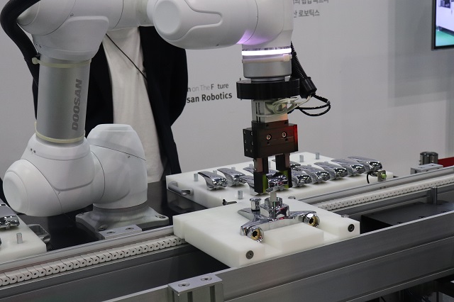 전시장에 부스를 마련한 두산로보틱스, 한화정밀기계, 뉴로메카 등은 협동로봇이 실제 산업 현장에서 어떻게 사람들을 도와주는지 직접 보여주었다.