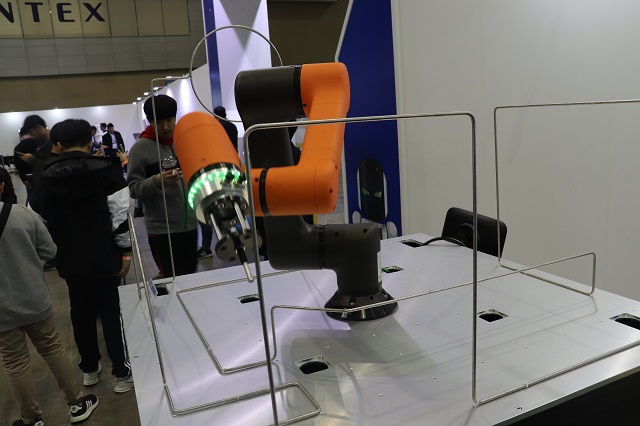 가장 큰 규모로 시연을 한 뉴로메카는 다양한 엔드 이펙터(End-effector·로봇이 작업할 때 작업 대상에 직접 작용하는 기능을 가진 부분)를 달고 제품을 조립하거나 식품 재료를 집어 이동하는 작업이 사람 근처에서 안전하게 진행될 수 있다는 점을 증명했다.
