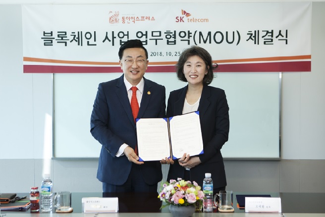 통인익스프레스 이호 대표회장(좌), SK텔레콤의 오세현 블록체인사업개발 Unit장(우)