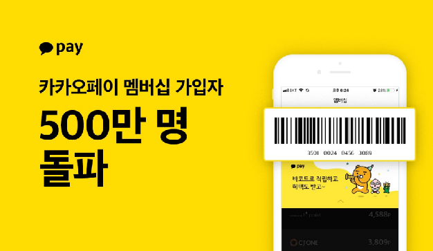 카카오페이(대표 류영준)가 하나의 바코드로 여러 제휴사의 멤버십 포인트를 관리할 수 있는 '카카오페이 멤버십' 서비스의 가입자가 500만 명을 돌파했다고 밝혔다.